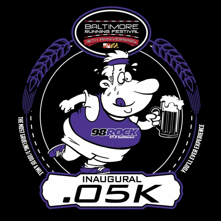 The Baltimore Running Festival, which offers a full marathon, half marathon, team relay, 5K and kids’ fun run, is celebrating its 15th anniversary and in honor of this, has announced a new race distance: the .05K run (or walk) which comes with a complimentary beer.