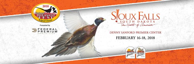 The 2018 National Pheasant Fest and Quail Classic will be hosted at the Denny Sanford PREMIER Center. The hotels are the Sheraton Sioux Falls & Conference Center, the Best Western Plus Ramkota Hotel, and the Ramada Sioux Falls Airport Hotel & Suites.