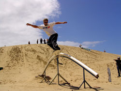 Florence, Ore. makes use of its share of the Oregon dunes with the world's first sandboard park, Sandmaster Park (SMP). Offering beginner to advanced slopes, bowls, cliffs, jumps and rail slides centered on 40 acres of private sand dunes, SMP is home of the annual Sand Master Jam competition, held the third weekend of June. Last year, the park hosted two other major events, the National Sandboard League Rail Jam and Dune Riders International Huckfest.
