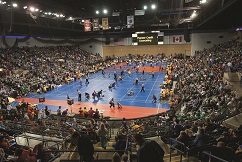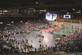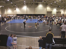 Another state with a strong wrestling background is North Carolina. This year, North Carolina USA Wrestling presented the 33rd annual Middle School State Wrestling Championships and the 15th annual Elementary School State Wrestling Championships at the W-S Fairgrounds and Education Building in Winston-Salem. These two events drew more than 2,800 people and delivered nearly a $500,000 impact to the Winston-Salem economy.