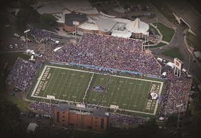 Holt Arena features 194,400 square feet of floor space and seats close to 12,000. Infilled synthetic turf was installed in Holt Arena in July 2011. The SoftTop Removable Matrix System is also installed in the Dallas Cowboys’ stadium. The arena boasts the largest indoor American flag–a breathtaking sight as it unfurls from the top of the dome and cascades toward the field.