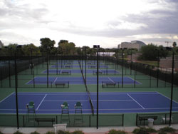 However, notes Tom Magner of DecoTurf, Inc. in Andover, Massachusetts, "A facility ought to have enough courts of the same surface type to accommodate both the actual tournament matches and some practice time for the participants who aren't playing at any given time. In addition, it is critical that all those courts be uniform - same pace-of-play (texture), net height, net tensions, lighting and so on."
