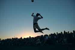 When the volleyball soars through the air and over the net, who's going to be diving after it on the other side: an Olympic caliber athlete in pursuit of a medal, or a teenaged kid determined to beat out a rival high school?